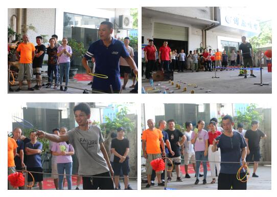 第三個環(huán)節(jié)是拔河比賽,由隊長抽簽選好隊員,男同事十個,女同事三個,隊員選好之后,就是大王隊和猛虎隊的PK對決了,場面也是很熱鬧,隊長找好拉拉隊長,安排好每個人的位置,做好調整姿勢,并且鼓勵大家有著必勝的信心,體現(xiàn)了大家團結一致,分工明確的干勁,三局兩勝,猛虎隊最終二比一勝了,每個隊員都有獎品,大家的積極性和友誼第一,比賽第二的精神,都在這場比賽表現(xiàn)出來了,能在這樣的一個大家庭生活和工作,真好。
