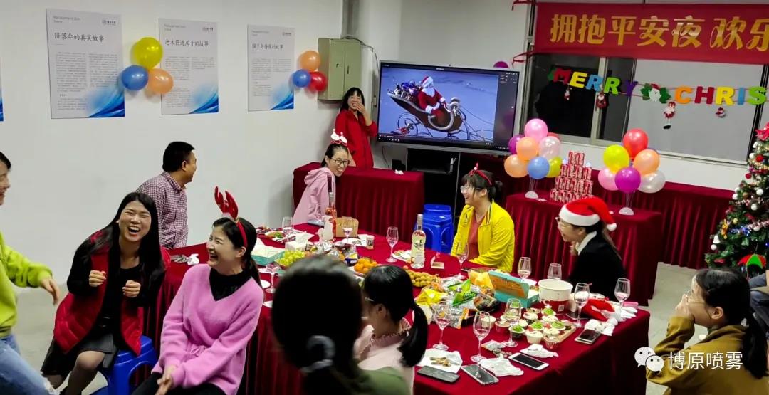 12月24日晚,歡笑聲、音樂(lè)聲、充滿了整個(gè)博原噴霧廠區(qū)。為豐富員工的文化生活,營(yíng)造良好的圣誕節(jié)日氛圍,促進(jìn)員工之間的溝通和交流,公司組織開(kāi)展了2020年圣誕節(jié)狂歡Party。