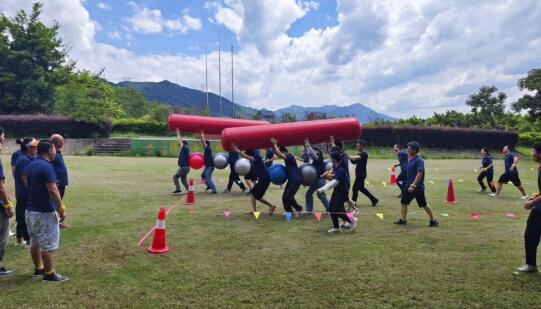 生活需要儀式感,工作需要?dú)w屬感,在教練的組織安排下,分別組成6支隊(duì)伍,分別完成昂首挺胸、協(xié)力競(jìng)走、開心麻花、十拿九穩(wěn)、移花接木、打地鼠等一系列活動(dòng)。