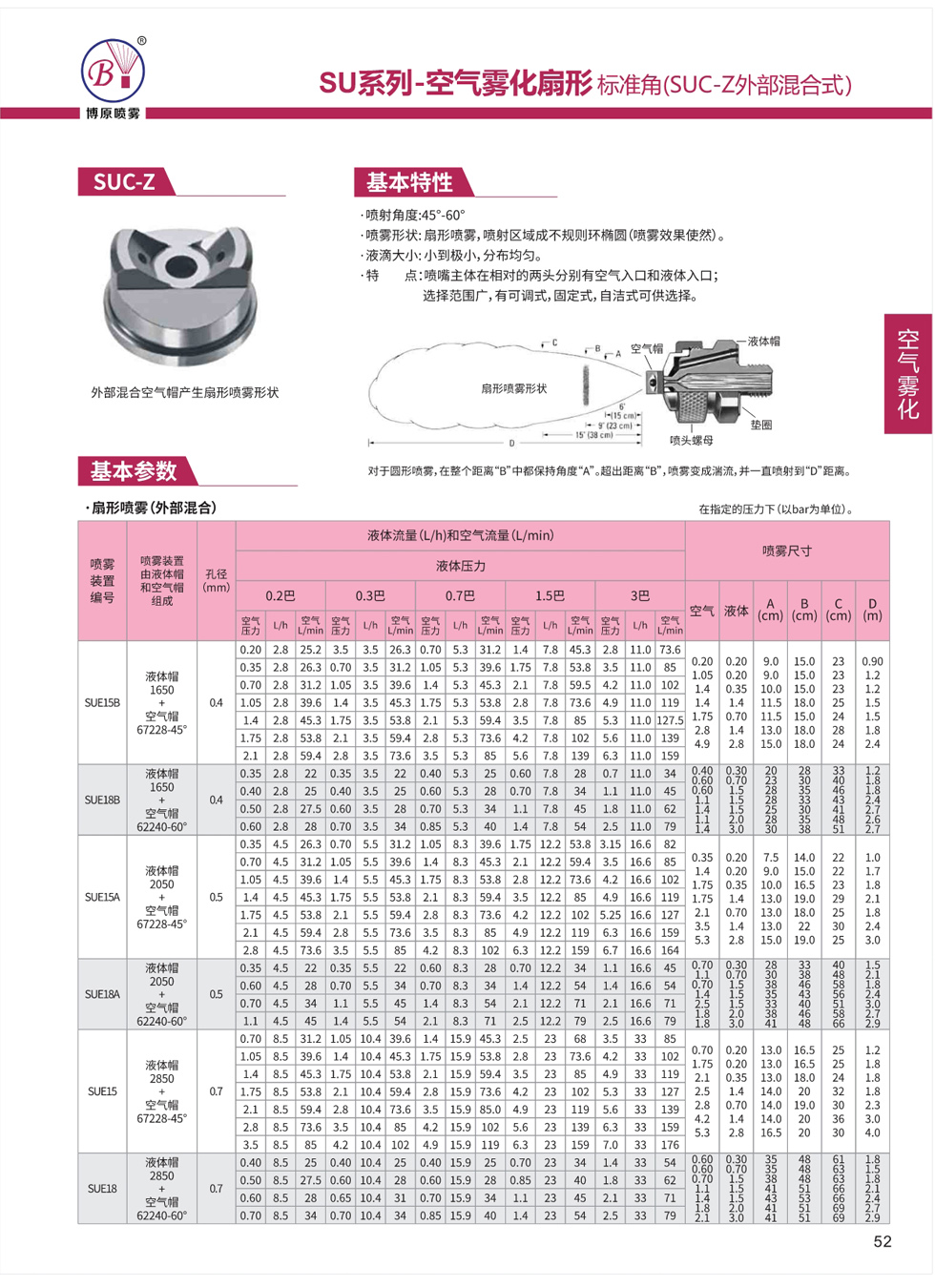 噴嘴主體在相對的兩頭分別有空氣入口和液體入口,選擇范圍廣,有可調(diào)式、固定式、自潔式可供選擇。
