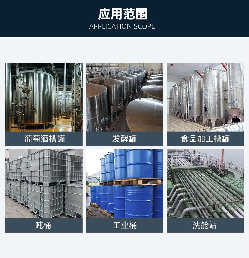 應(yīng)用范圍:貨柜清洗,小桶洗滌,管道清洗,容器清洗,鼓狀桶清洗
