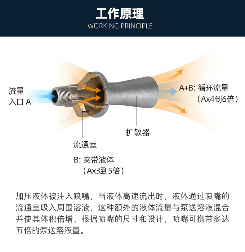 根據(jù)berboulli射流引力原理,使得工作射流與被吸引液體以1:4混合擴(kuò)散。